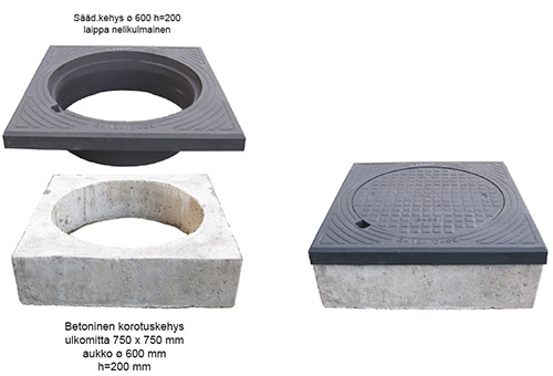 Betoninen korotuskehys 750x750 h=200 mm | 3323851 | | Tarkoitettu säädettävälle kehyselle ø 600 h=200 mm Laippa nelikulmainen |