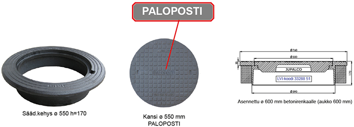 Sääd.kehys ø 550 h=170 mm | 3328851 | 264,00 | Kannelle ø 550 D400 paloposti |