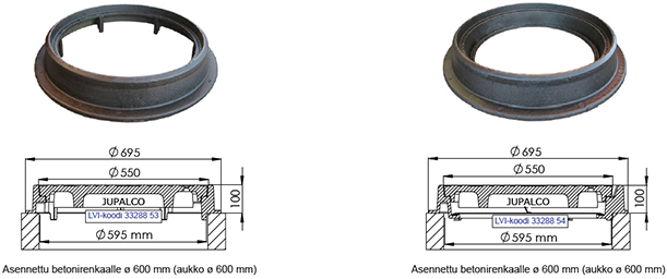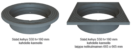 Kehys ø 550 h=100mm Yhdelle kannelle | 3328853 | | Kehys ø 550 h=100mm Kahdelle kannelle | 3328854 | |