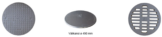 | Hajutiivis välikansi ø 490 | 3328873 | | Lujitemuovi, muototiiviste, nostokahvoilla |