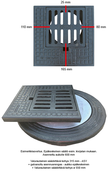 Sääd.kehys 315 - ASY Laippa nelikulmainen ASY - epäkeskeinen | 3363604 | | Asennetaan ø 315 putkelle Laipan koko 530 x 530 mm Kannen paikka nelikulmainen |