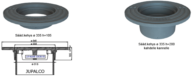 | Sääd.kehys ø 335 h=105 mm | 3363685 | | Sääd.kehys ø 335 kehys korkea h=200 mm kahdelle kannelle | 3363677 | |