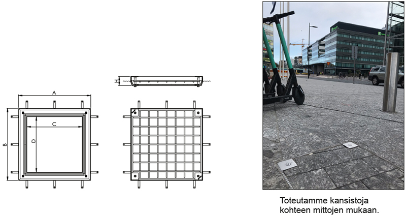 Liikennealueelle, painoluokitus D400 (40 tn) HST / RST tai alumiini Pinnat voidaan viimeistellä usealla eri tavalla