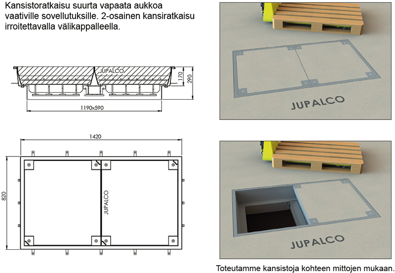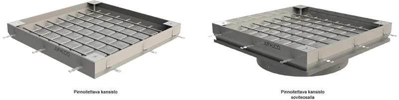 sekä nostopisteet. Kehys ja kansi toimitetaan aina settinä.