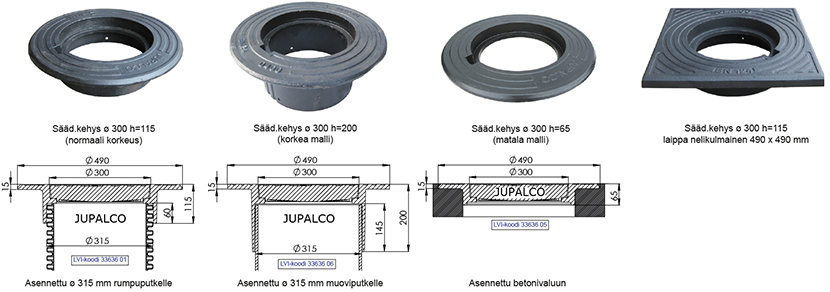 Sääd.kehys ø 300 kehys matala h=65 mm | 3363605 | | Matalassa mallissa ei kiinnitysreikiä, mutta esim. raudoitusta varten voidaan tehdä tartuntareiät työmaalla. |