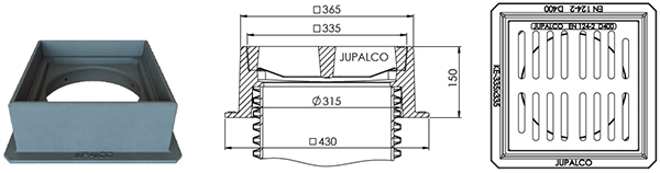 Kehys 335 x 335 h=150 mm | 3326117 | | Asennetaan ø 315 putkelle Kannen paikka nelikulmainen |