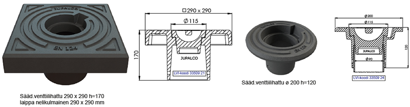 Kiinteä Jupalco venttiilihattu ø 210 h=170 mm sekä