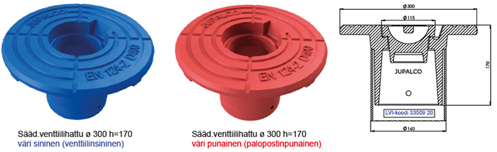 Sääd.venttiilihattu ø 300 h=170 mm väri punainen (palopostinpunainen) putkelle 110 tai 160 mm | 3350922 | |