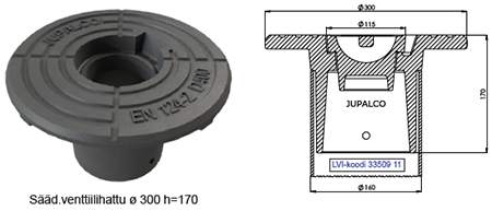 Sääd.venttiilihattu ø 300 h=170 mm putkelle 110 tai 160 mm | 3350911 | |