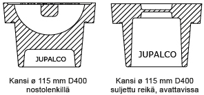 Jupalco kansi ø 115 mm, ei läpireikää, nostosangalla