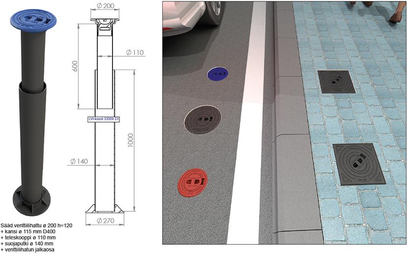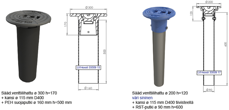 Sääd.venttiilihattu ø 300 h=170 mm + kansi ø 115 mm + PEH suojaputki ø 160 mm h=500 mm