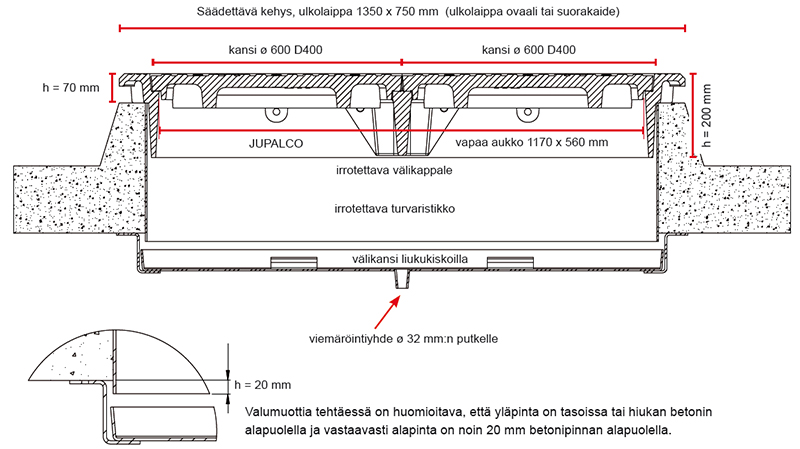 1200 x 600 mm ovaali-kaivonkansistot