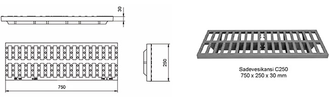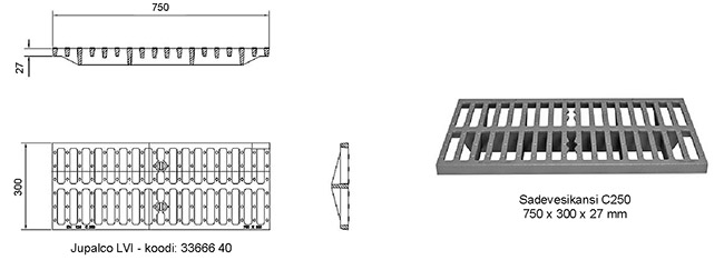 Sadevesikansi SA30D40 | 750 x 300 x 27 (Pyydä mittapiirrustus erikseen) | D400 (40tn) | 3366618 | |