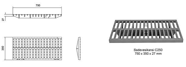 Sadevesikansi SA30C25 | 750 x 300 x 27 | C250 (25tn) | 3366640 | |